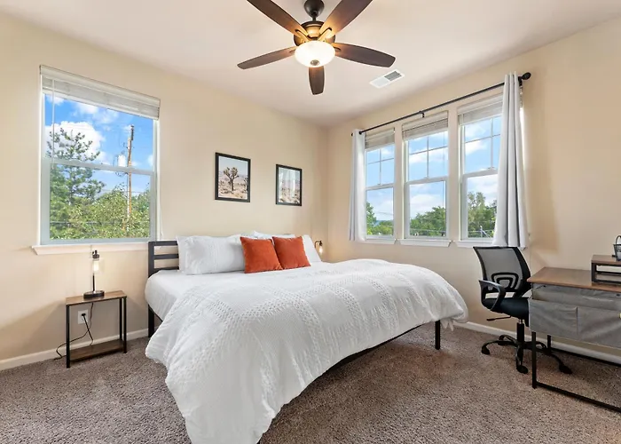 O apartamento Family And Work Friendly Midtown Sanctuary Apartamento está localizado a 2 km do centro de Reno e oferece acomodação com um parque de estacionamento no local. Este apartamento oferece quartos com zona de vestir, sofá e secretária.